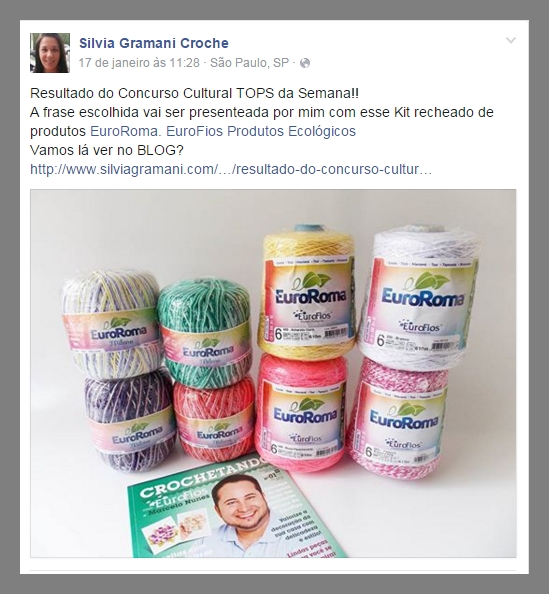 Quem quiser ver a postagem na íntegra o link é esse: Resultado do Concurso Cultural Tops da Semana